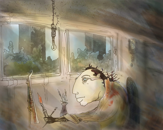 Arbeitsraum des Künstlers. Es scheint einer jener besonderen Tage zu