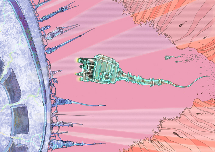 Какая досада, что это действительно выглядит как небо и зеленый космический корабль. Буду считать, что они долго целовались у батареи... А вообще картиночка нравится. |