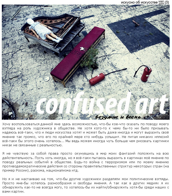Отрывок из моего интервью в online-журнале "Confused art" (Март 2009)