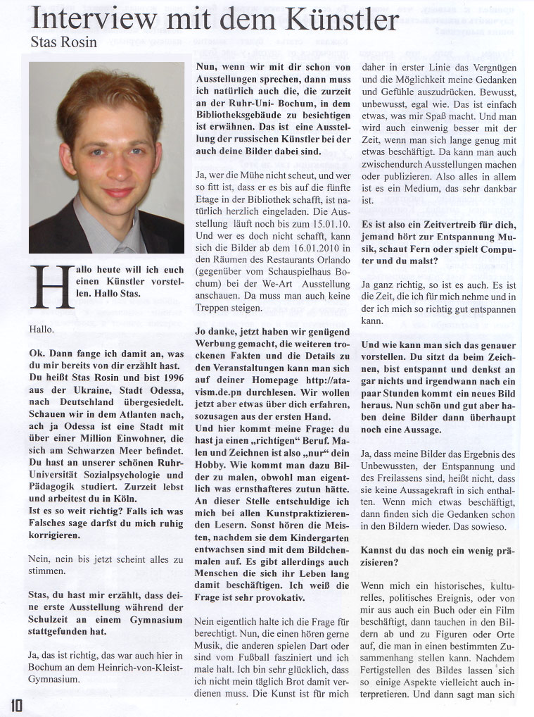 Mein Interview in der Zeitschrift "Jarosslav" (Bochum) 01.02.2010